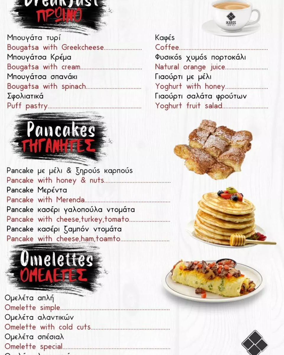 In conclusion, Ikaros Bistrot’s menu presents a harmonious balance of breakfast, lunch, and dessert choices that cater to a wide array of tastes. With crepes, waffles, and pancakes starting the day off on a sweet note and a tempting selection of desserts rounding out the meal, this bistro ensures that every dining experience is memorable.